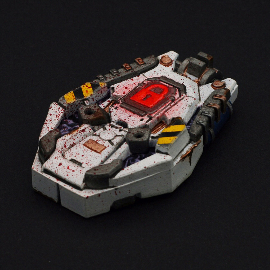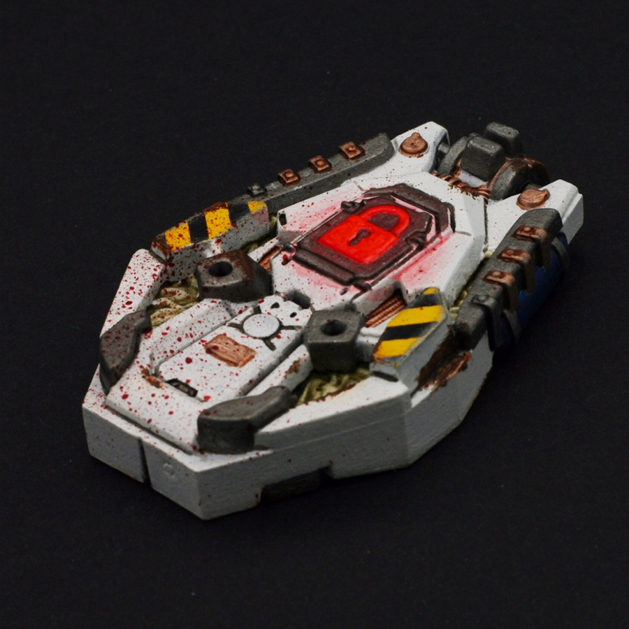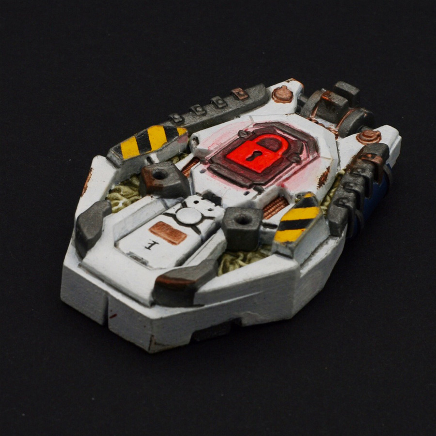 Nemesis2020I backed this game directly on Kickstarter with the "Sundrop" option (a very simple painting of all miniatures), but I couldn't resist to repaint at least the 4 escape pods of the terrain expansion myself.